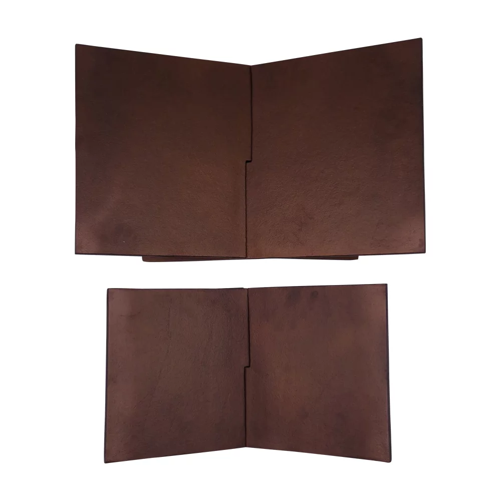 Deze boekenstandaards zijn met de hand gemaakt van aluminium. Door de warme brons kleur kan de boekenstandaard mooi in verschillende interieurs worden gestijld. Bewust ontworpen op een manier dat boeken meer open komen te liggen op de standaard door de bredere wijdte, zodat ( tafel) boeken ook echt tot hun recht komen en blikvangers worden in het interieur. Kortom, een echte eyecatcher voor op een salontafel of dressoir. Verkrijgbaar in 2 maten. Ook verkrijgbaar in de kleur mat zwart.