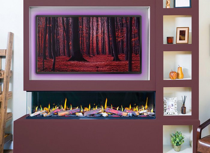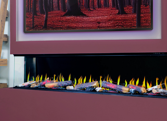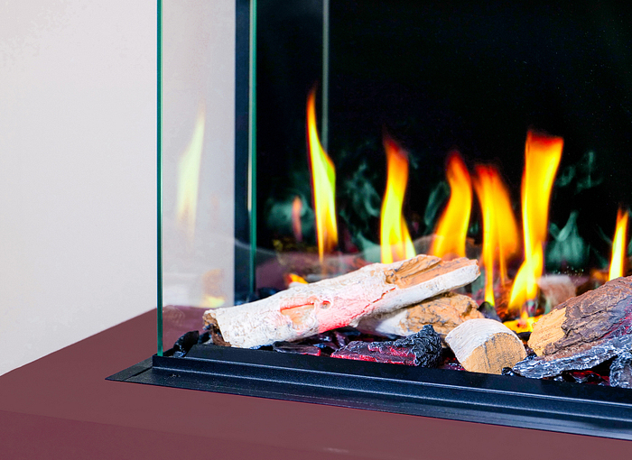 De Luminosa 185 wordt standaard geleverd met drie installatie-opties: front, tweezijdig of driezijdig vuurzicht. Hierdoor kan de haard volledig naar wens worden geïntegreerd – of dat nu in een mediawand, een luxe suite of als een moderne roomdivider is.