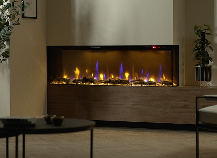 De Ignite Bold 50 kan volledig naar wens worden geplaatst: kies voor een 1-, 2- of 3-zijdige opstelling, afhankelijk van jouw interieur en stijl. Het grotere, getinte glas biedt een panoramisch uitzicht op de dansende vlammen, zichtbaar vanuit vrijwel elke hoek van de kamer.