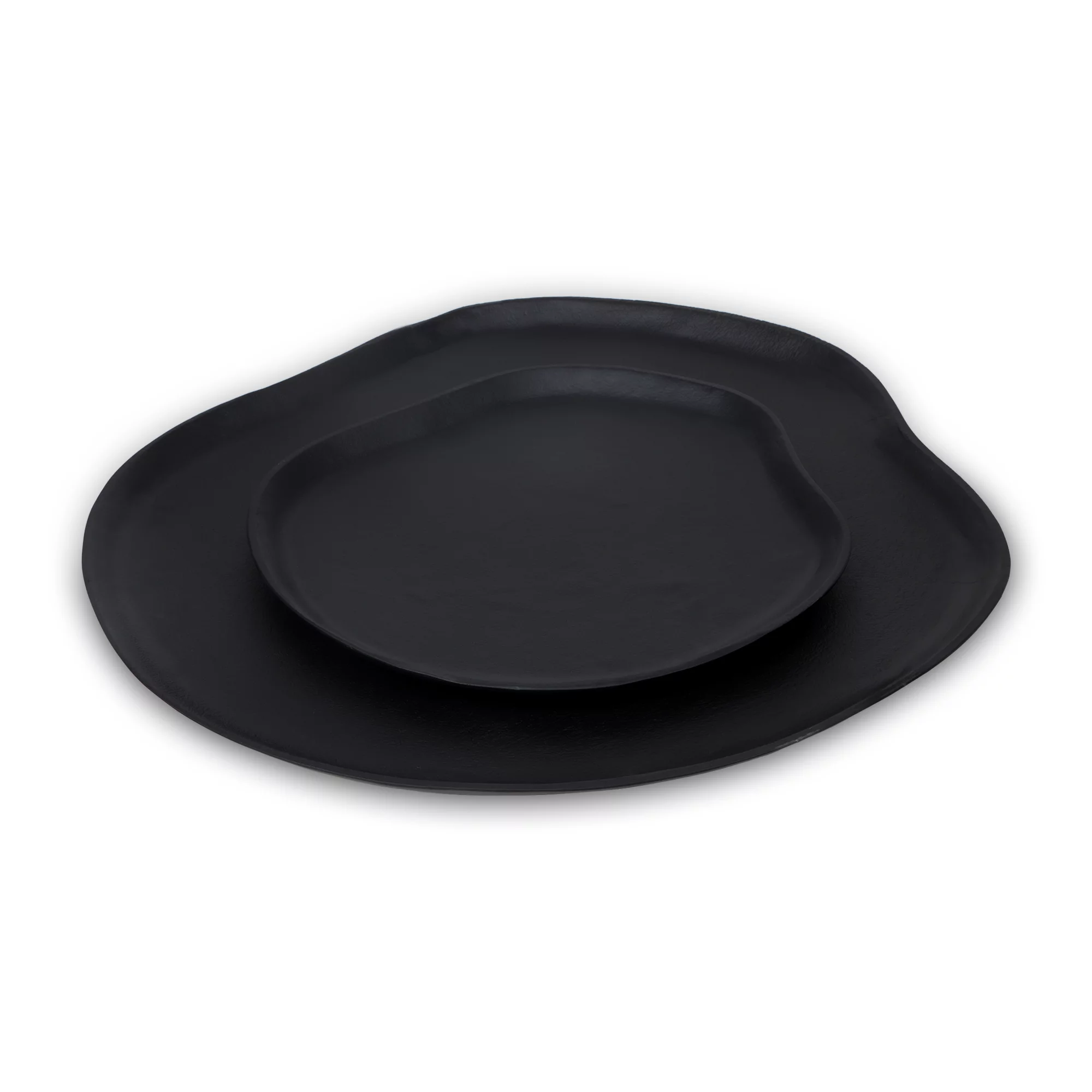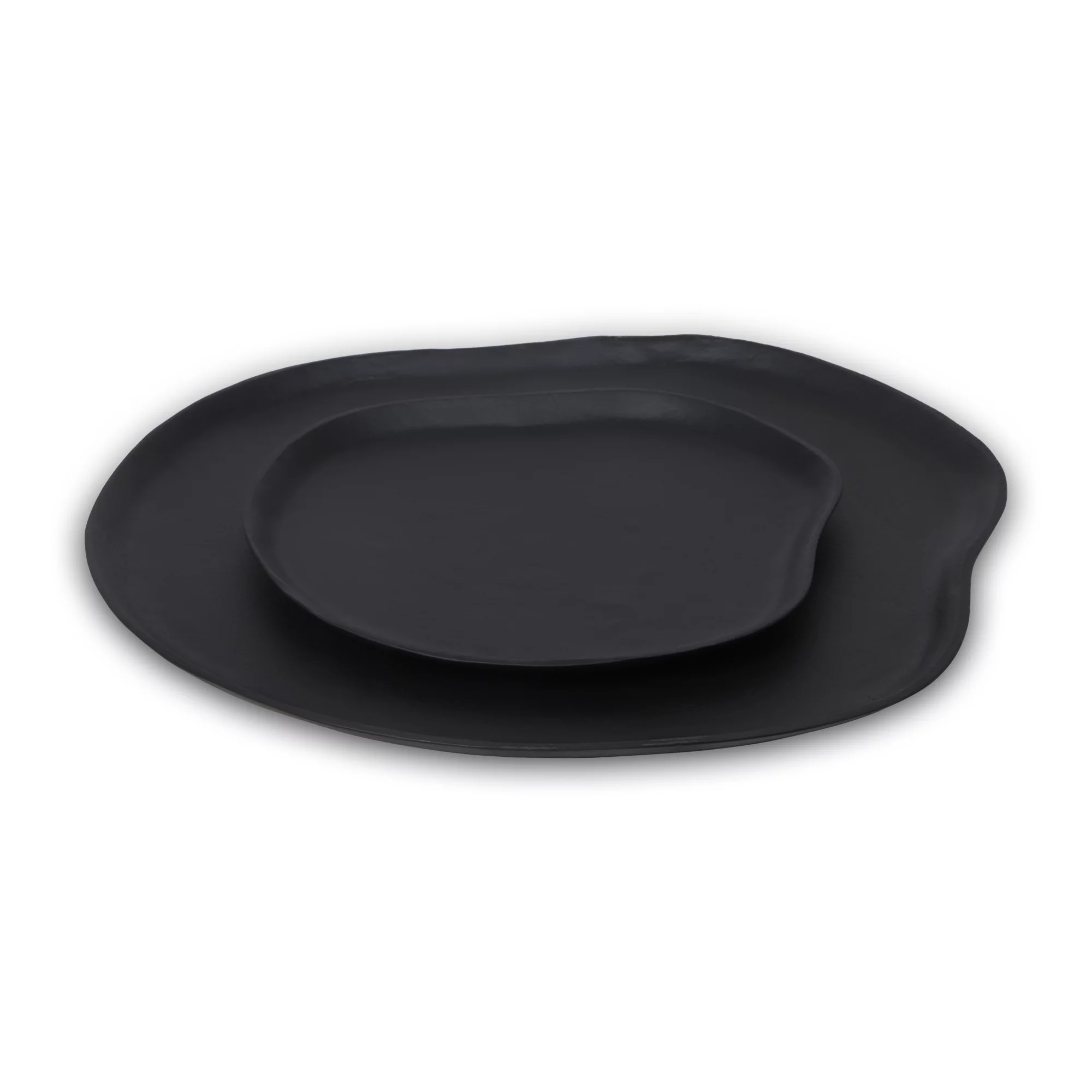 Dienblad in een organisch design en een mat zwarte kleur. De randen van het dienblad lopen af naar buiten voor een mooie overgang. Verkrijgbaar in 2 maten. Ook verkrijgbaar in beige.